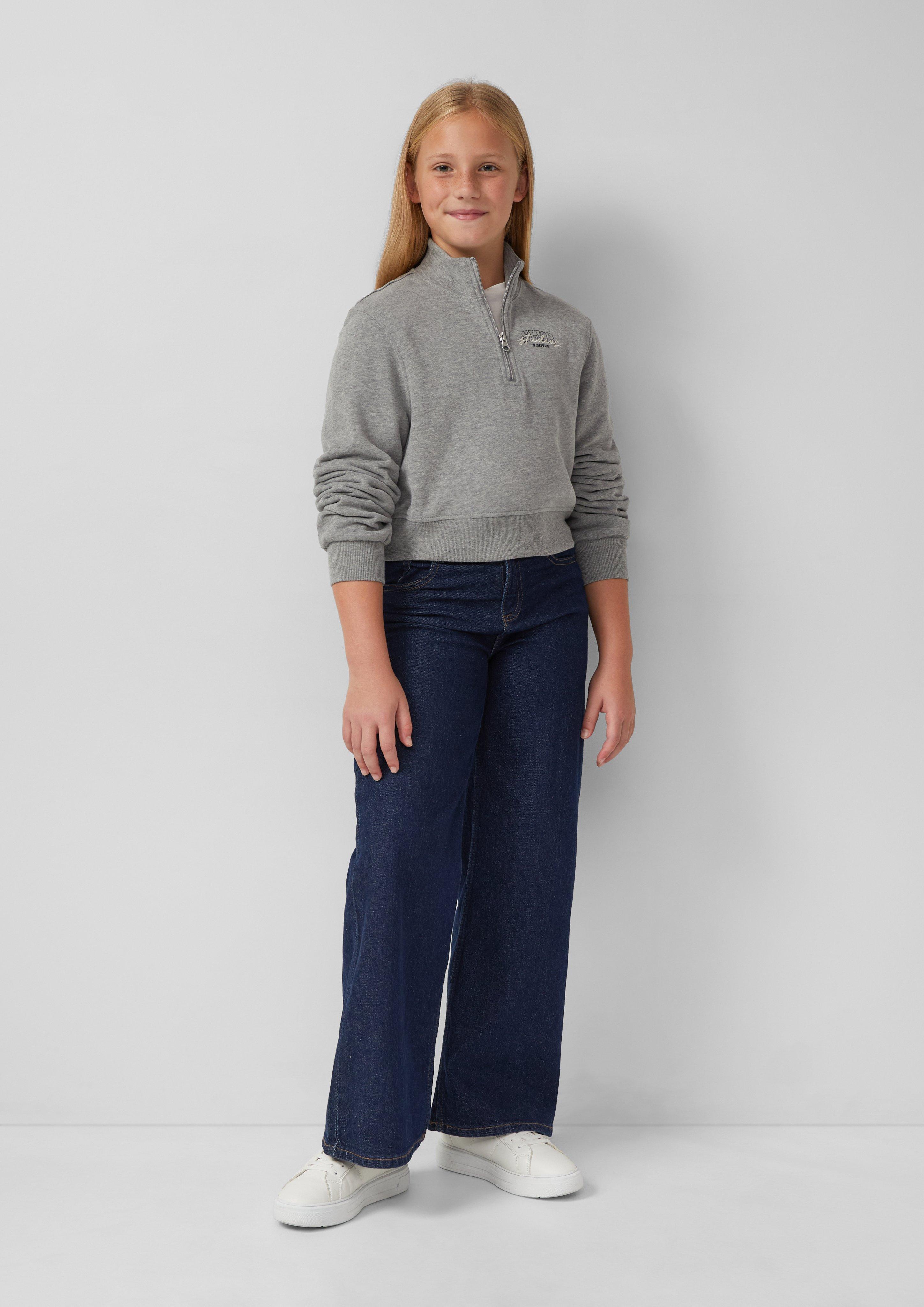 Verhoog de stijl van je tiener met dit cropped sweatshirt met opstaande kraag en praktische ritssluiting. De zachte, geborstelde stof biedt comfort en de geribde boorden en zoom zorgen voor een goede pasvorm. Perfect voor casual uitjes of als laagje op koelere dagen.