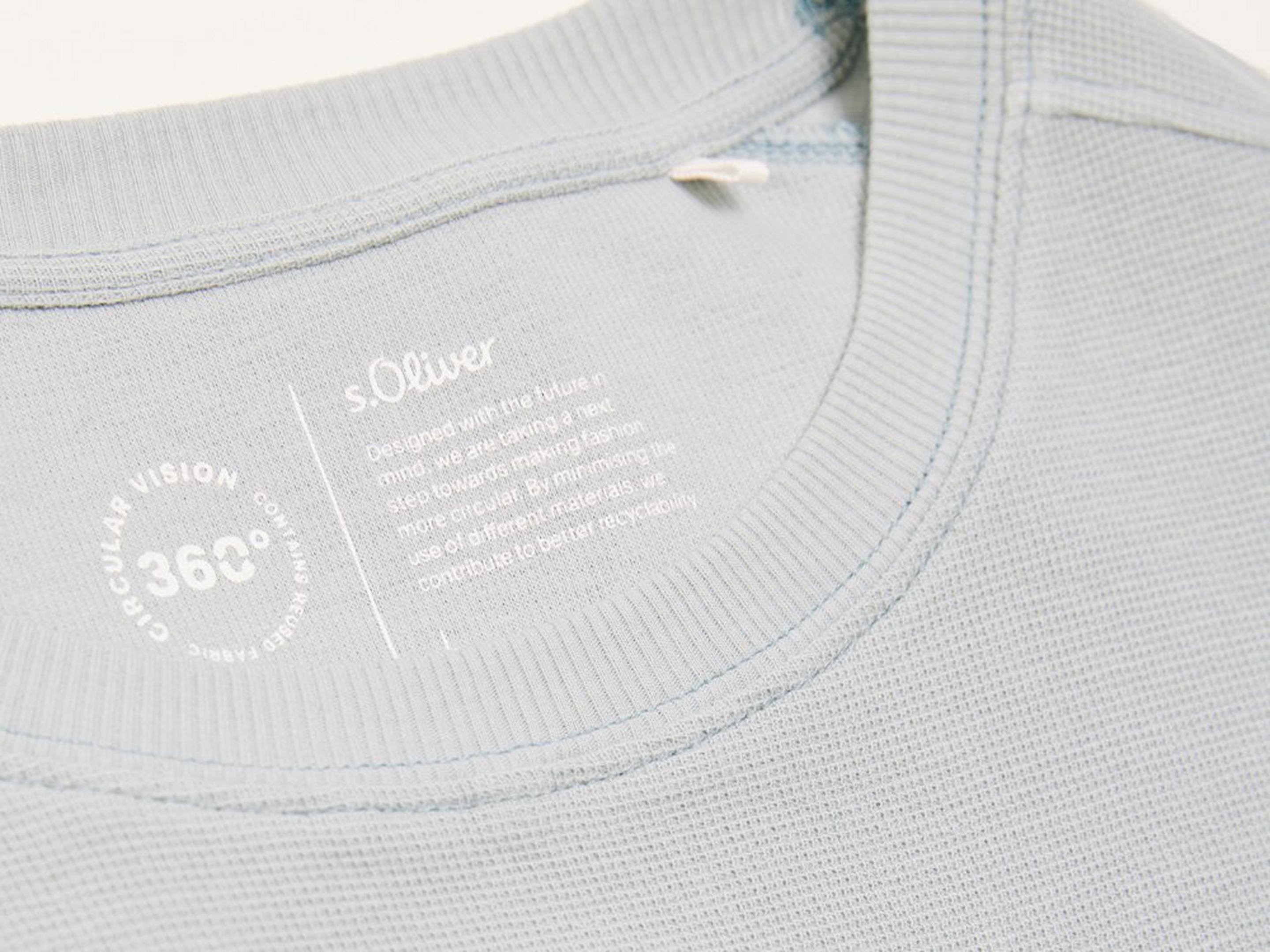 Ons favoriete project: 360° circular vision. Een duurzamere capsule en de volgende stap naar circulariteit. Het aantal verschillende materialen en onderdelen in items hebben we zo klein mogelijk gehouden om ze beter te kunnen recyclen. Onze jassen zijn volledig gemaakt van gerecycled polyester. Datzelfde geldt voor het naaigaren en het band van de ritsen. Onze jeans, shirts, T-shirts en hoodies bestaan voor ten minste 98 procent uit katoen dat voor ten minste 20 procent is gerecycled. Bij de jeans gebruiken we in plaats van moeilijk recyclebare studs en knopen modieuze borduursels en innovatieve processen in de afwerkingsfase om hulpbronnen te besparen. En de shirts? Hier hebben we bij het naaigaren bewust gekozen voor garen op cellulosebasis. Bovendien hebben we patches en labels vervangen door modieuze prints. Voel je goed met de nieuwe duurzame items van s.Oliver.